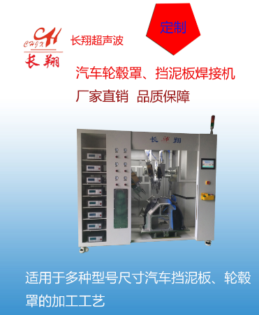 輪轂罩焊接機:本機采用多組超聲波焊接系統組成,全系列PLC程序控制,全自動化工作系統,電腦觸摸屏式操作簡便,成品率高。